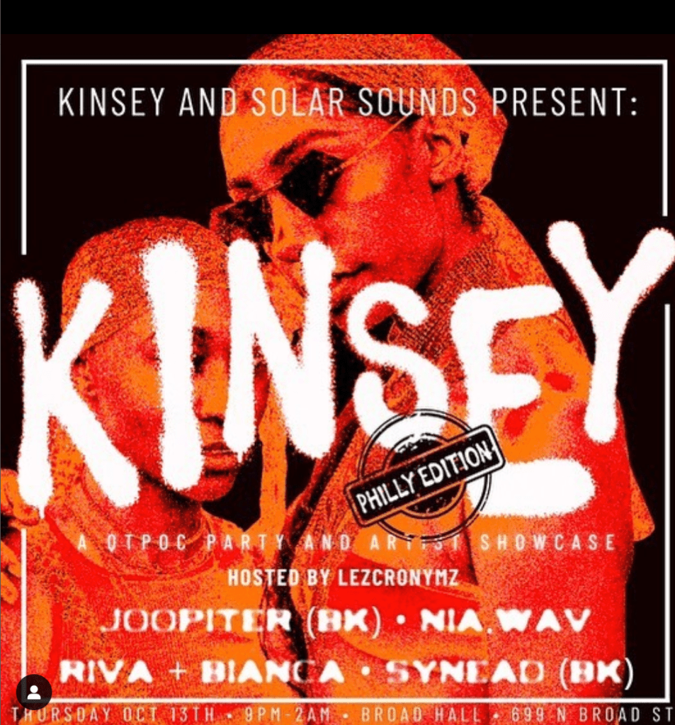 Brooklyn based Art Collective Kinsey [@kinseyxkinsey] brings their queer namesake party to Philadelphia for the first time in collaboration with Solar Sounds [@solarsounds.us] and Lezcronymz [@lezcronymz]. Residents Joopiter and Synead join Solar Sounds Co-founders Riva + Bianca along with Philly based DJ Nia.Wav to bring a night of sound and vibes spanning genre and texture.