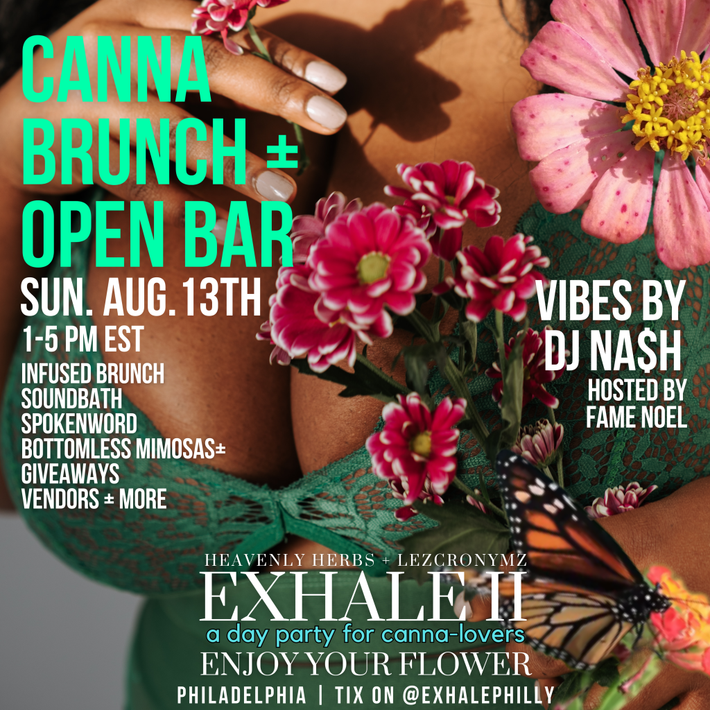 EXHALE II takes place on August 13th at a secret location in West Philadelphia. The event will feature a Brunch & Mimosa Bar, Spoken Word Artists, Soundbaths, Massage Therapy, Wellness Vendors, and musical vibrations by DJ Na$h. RSVP now for Brunch, Open bar, and General Access passes.