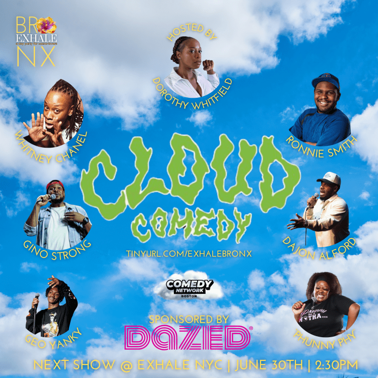Bronx, New York. Friday, June 14, 2024. Cloud Comedy & Comedy Network Boston joins the EXHALE Tour in NYC Pride Weekend! The announcement comes just two weeks before the community day party and canna-brunch debuts in the South Bronx.