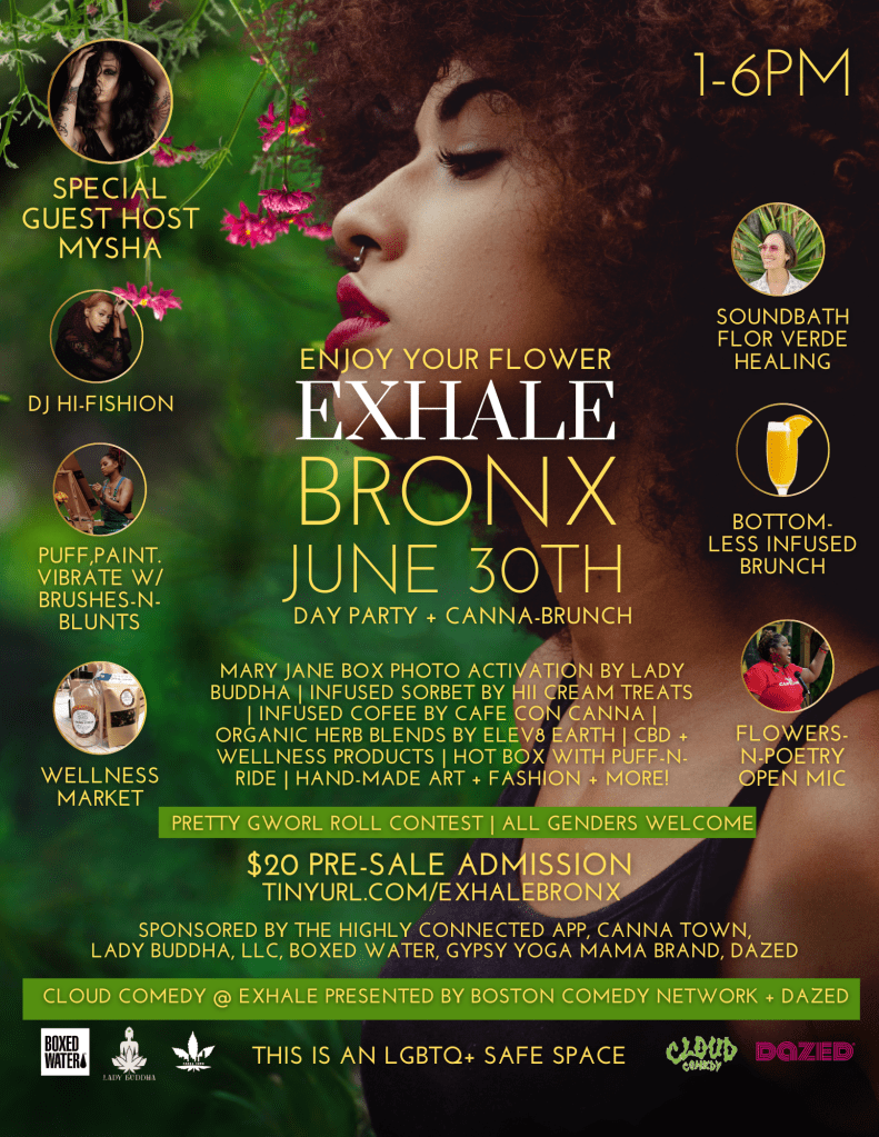 Black Lesbian LinkUp will be kickin’ it at EXHALE NYC, the only LGBTQ+ Cannabrunch and Day Party in NYC! Bring your flower and celebrate plant medicine in the Bronx with DJ HI-Fishion, Cloud Comedy, Soundbaths, Flowers-N-Poetry Open Mic Sesh and more! PLUS, get a FREE Puff + Paint + Vibrate upgrade sponsored by Dazed while supplies last!