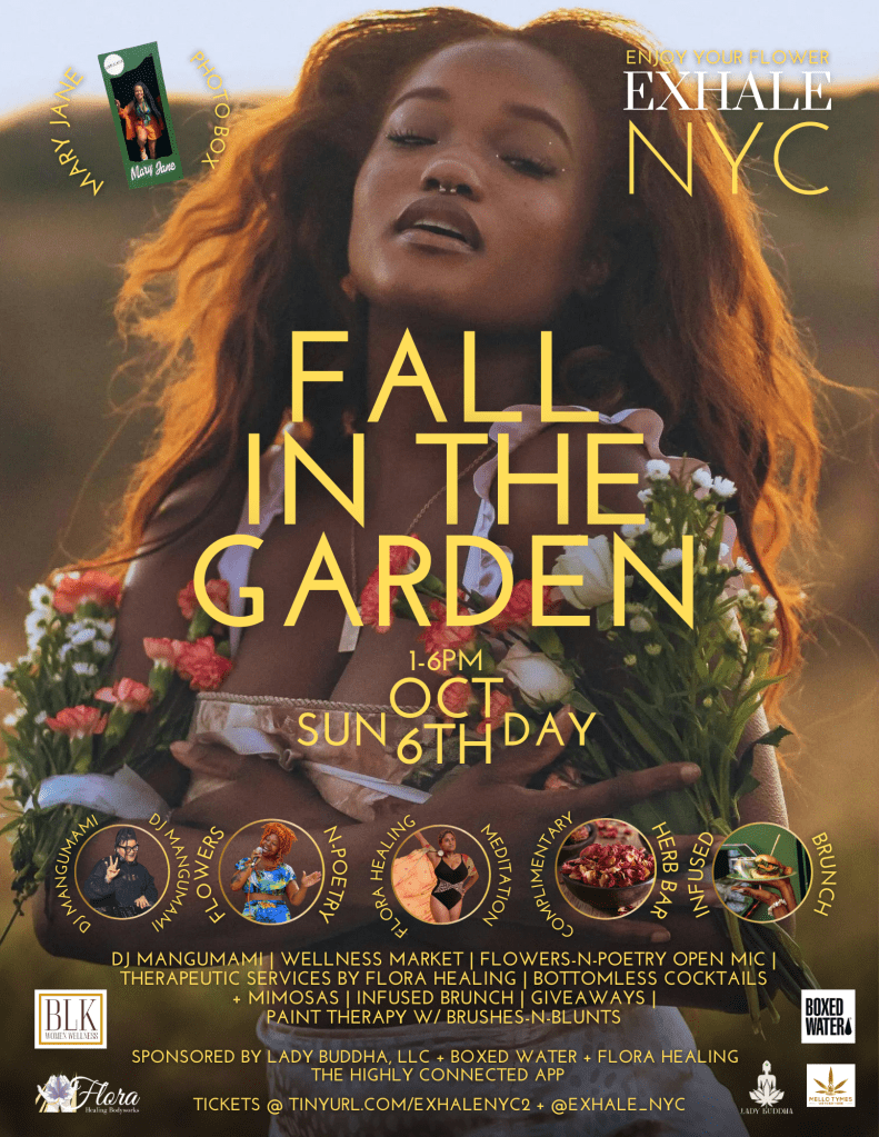 Transcend into Fall with EXHALE NYC! At EXHALE we [day] party with a PURPOSE! EXHALE is a radical fusion of cannabis empowerment, healing, action, and consumption that centers the Black, Brown, Latinx, and Indigenous Communities.