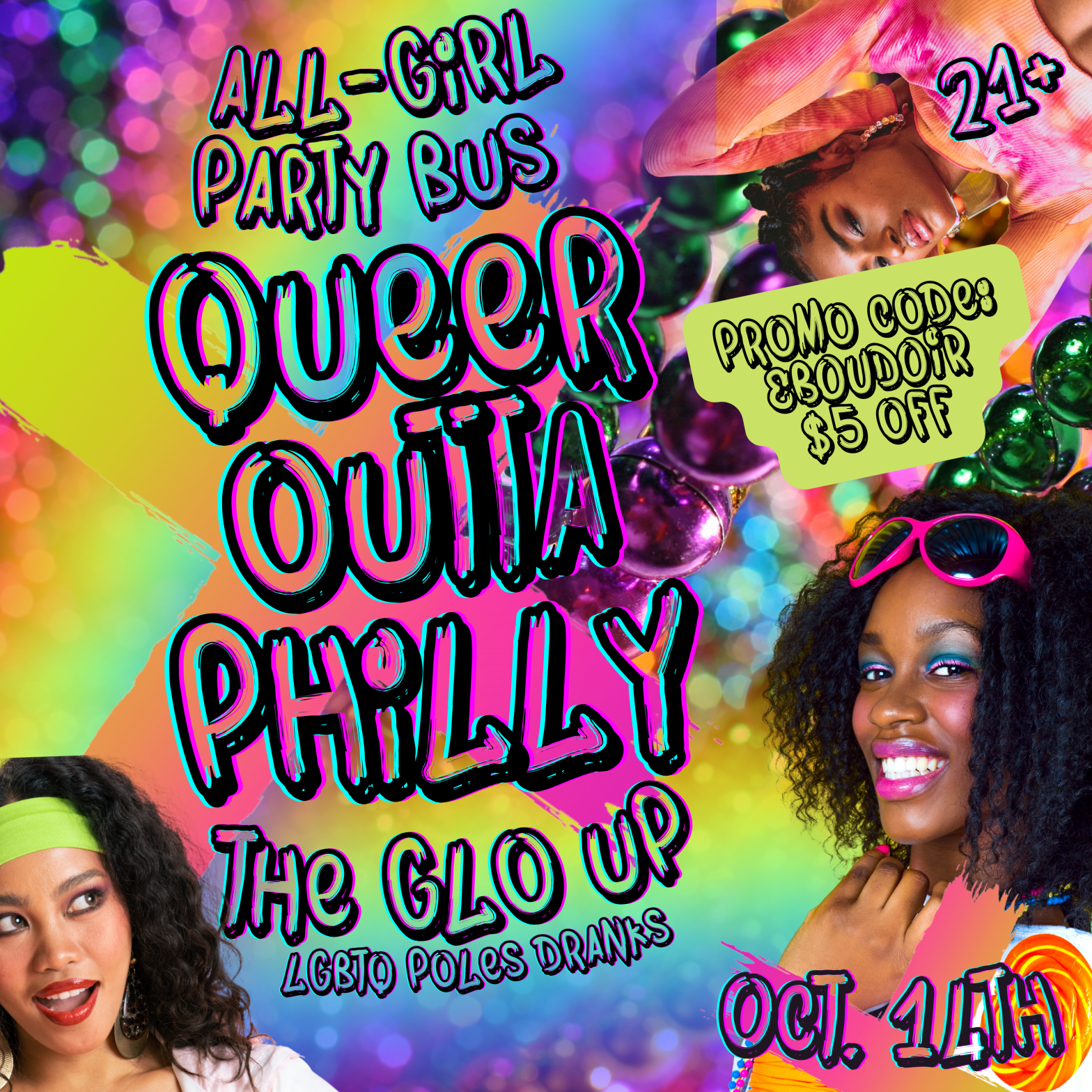 Lezcronymz Productions is taking it back one time–and this time we’re getting our GLO ON! More fun and More freedom when you ride with Queer Outta Philly! The Bus Features: TWERK FAIRY POLE FAIRY VENDORS @erotic_boudoir@ganjabrews GIVEAWAYS BY @aunatural_llc@erotic_boudoir@zimadesignz@blackdragonbreakfastclub@brownsugarbotanicals COMMUNITY PARTNERS Beyond the Bell Tours-LGBTQ +Women’s History ToursTaste ATL: The SeriesThe Main Event Philly-Philly’s Mega LGBTQ+Continue reading “The Tri-State’s Favorite ALL-GIRL PARTY BUS, Queer Outta Philly, Returns for National Coming Out Day!”